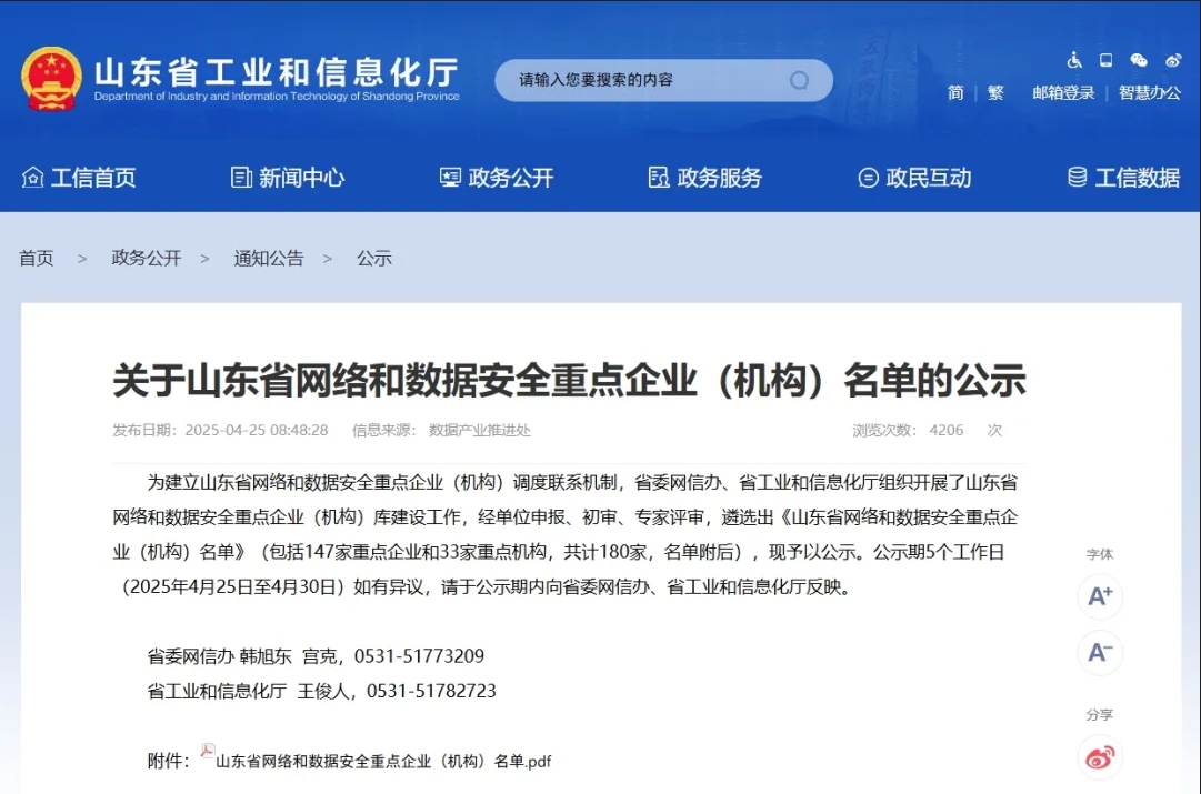 喜訊!我公司蟬聯(lián)山東省網(wǎng)絡(luò)和數(shù)據(jù)安全重點企業(yè)